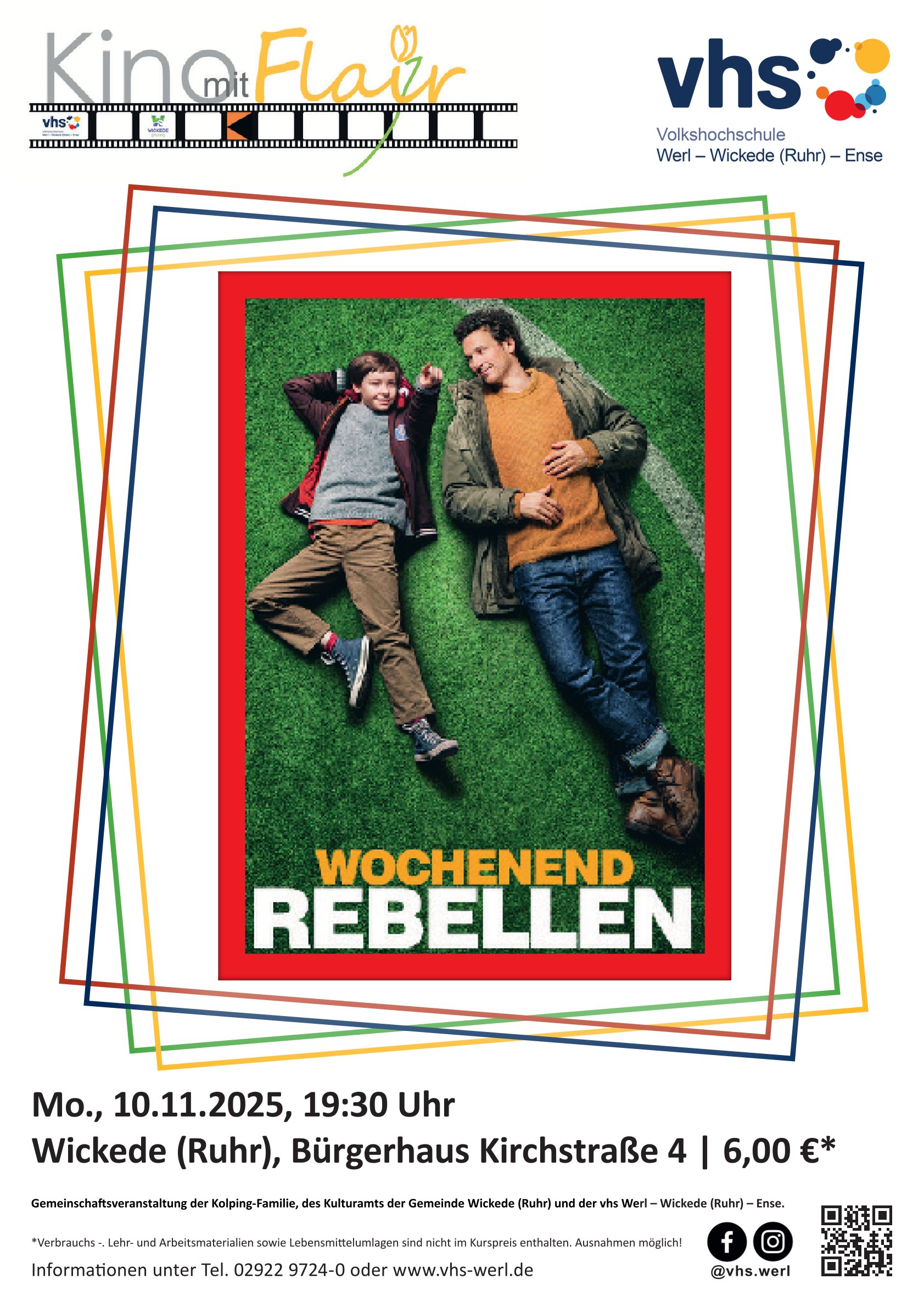 Unser „Kino mit Flair“ zeigt dieses Mal mit den ,,Wochenendrebellen“ einen Spielfilm nach der wahren Geschichte einer außergewöhnlichen Deutschlandreise von Vater und Sohn. Diese führt beide durch den turbulenten Kosmos der deutschen Fußballszene und durch besondere Herausforderungen, denn Sohn Jason ist Autist. Sein Alltag besteht aus täglichen Routinen und der unverzichtbaren Sicherheit fester Umstände und Regeln. Mutter Fatime versucht alles, um Jason den nötigen Rückhalt zu geben, doch vor allem in der Schule stößt ihr Sohn auf viel Unverständnis. Als der Familie ein Wechsel auf eine Förderschule nahegelegt wird, muss auch Vater Mirco beweisen, dass er seiner Verantwortung als Vater gerecht wird. Er schließt dazu einen Pakt mit seinem Sohn: Jason verspricht, sich alle Mühe zu geben, um an seiner Schule zu bleiben, wenn Mirco ihn dabei unterstützt, einen Lieblingsfußballclub zu finden. Schließlich ist jeder in der Klasse Fußballfan! Doch Jasons besondere Denkweise macht dies zu einem außergewöhnlichen Entscheidungsprozess: Um sich für einen Verein zu entscheiden, beharrt er darauf, dass er auf jeden Fall alle 56 Mannschaften der ersten, zweiten und dritten Liga live in ihren Heimstadien spielen sehen muss...